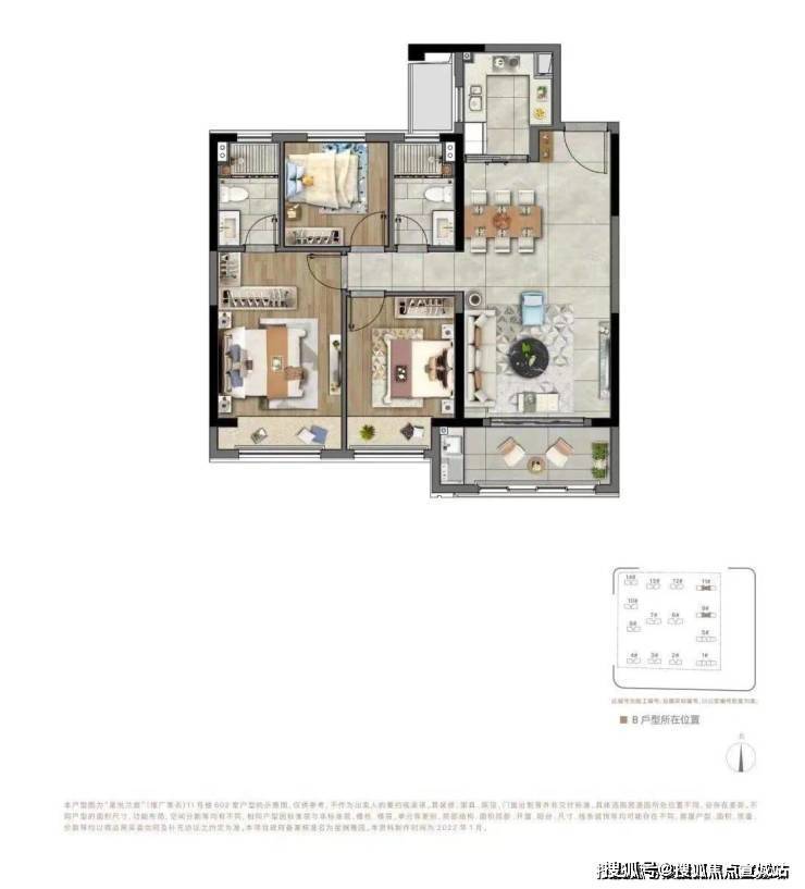 170㎡四居室:大尺度四房空间,满足高品质生活追求,售价310.0-335.0万。