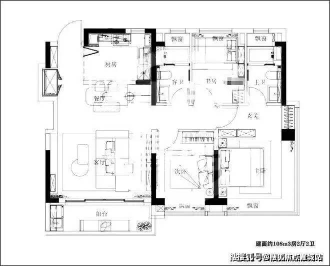 建面约128㎡4房2厅2卫,独立入户玄关,四开间朝南,客厅面宽约4.05米,南北直通,厨房附赠飘窗,可增加实用面积,边套户型主卧为270转角飘窗!