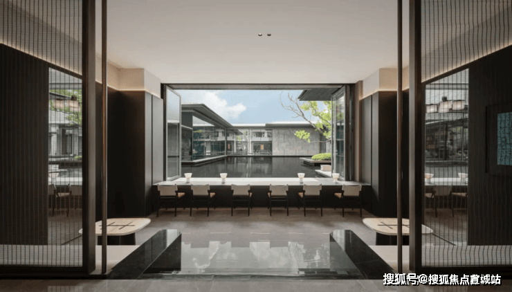 二重中心水景融合苏式园林独有的叠山理水艺术,运用流动且空灵的设计手法,打造出一个充满意境的景观空间。在这里,“一峰耸立如太华千寻,一勺波光似江湖万里”,生动展现了山水之间的诗意境界。秉承“曲则全”的哲理,结合东方美学的现代摄影视角,呈现一场视觉与心灵的盛宴。