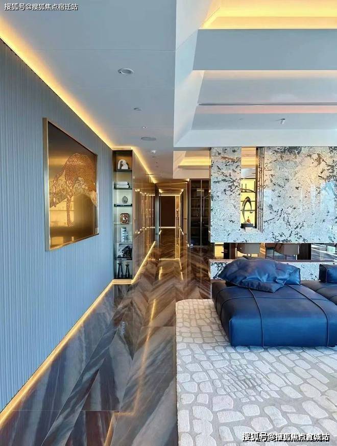 古北壹号公馆售楼处电话☎:400-882-8814(预约热线)✔✔✔本案中墙顶面采用了“顶盖墙”的设计,只在沙发和电视背景墙两端留出空间安装隐藏灯带,既满足了层次感需求又让整体造型更加统一、美观。