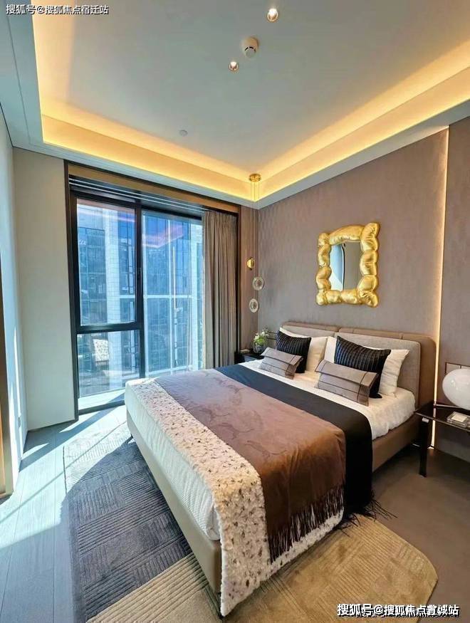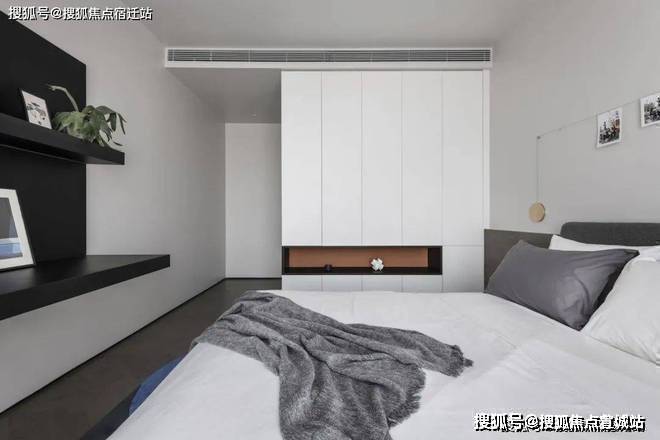 客房床头背景墙利用墙板做了凹凸造型突显层次感,简单不单调;走廊的胡桃木色墙板延伸进来变作衣柜,是这个空间与外部空间的链接。古北壹号公馆售楼处电话☎:400-882-8814(预约热线)✔✔✔