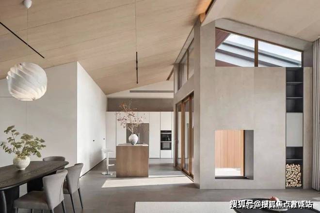 这个空间的设计很独特,既通透又有层次感。巧妙的错位设计,让每个空间都有自己的尺度感。