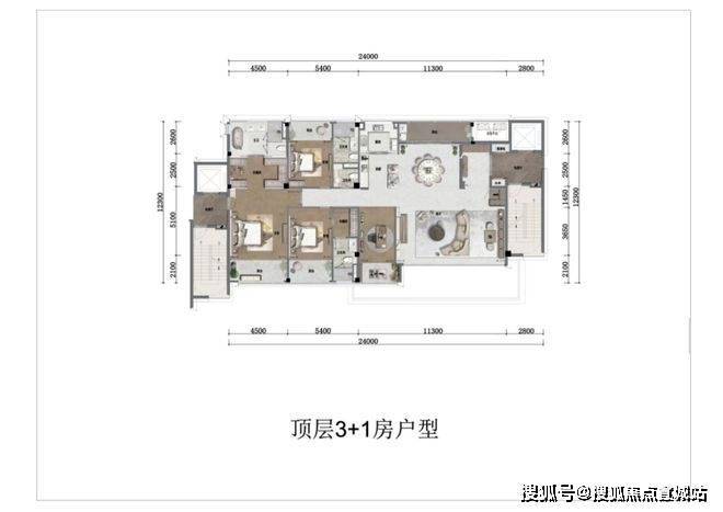 首先,它拥有无与伦比的南向面宽。以约315㎡户型为例,做到五开间朝南,南向是约7.8米×10.9米的一体化双厅,面积约85㎡,相当于别人家一套小户型住宅了。