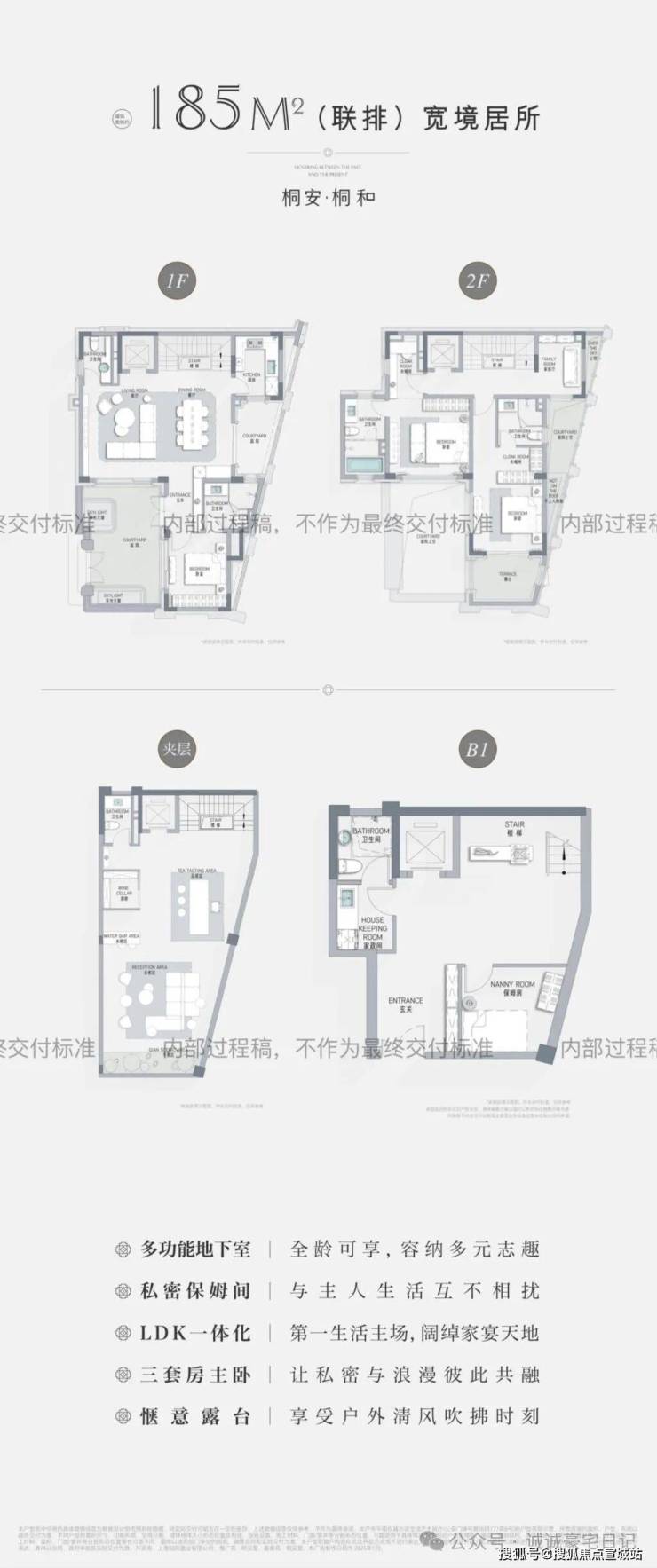 桐安里由招商操刀建设,整体布局为地上2-3层+阁楼+花园+地下1层(挑高6.6米)、可分隔成两层,物业使用的是招商最高级的积余物业(地上18元/地下9元),项目整体将于2026年底交付。