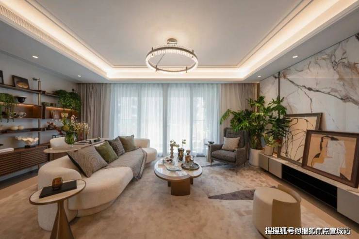 在景观打造方面,项目风格是新海派风格,特点是延续海派文化的典雅格调。整个社区采用 “一环”“两轴”“三园”“六院” 的空间结构,展现现代海派的精致人居空间。
