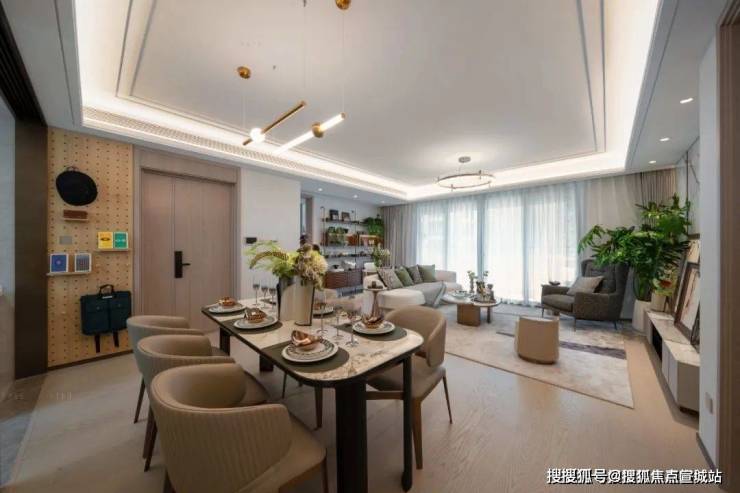 客餐一体化设计,让空间更加开阔通透,无论是家庭聚餐还是朋友聚会,都能轻松容纳,共享欢笑与宁静。