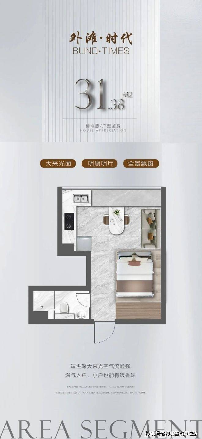 户型特点:全明户型、大采光面通风效果好、全景飘窗、功能齐全,小户型也可以拥有独立客厅、卧室等空间。