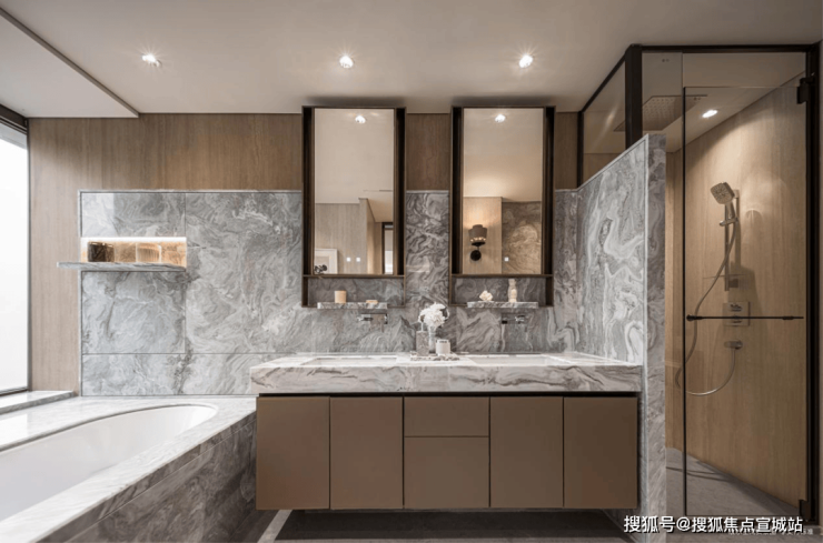 由外而内,用料十足,公区打造光石材就用了十几种,室内空间配置更是拉满。