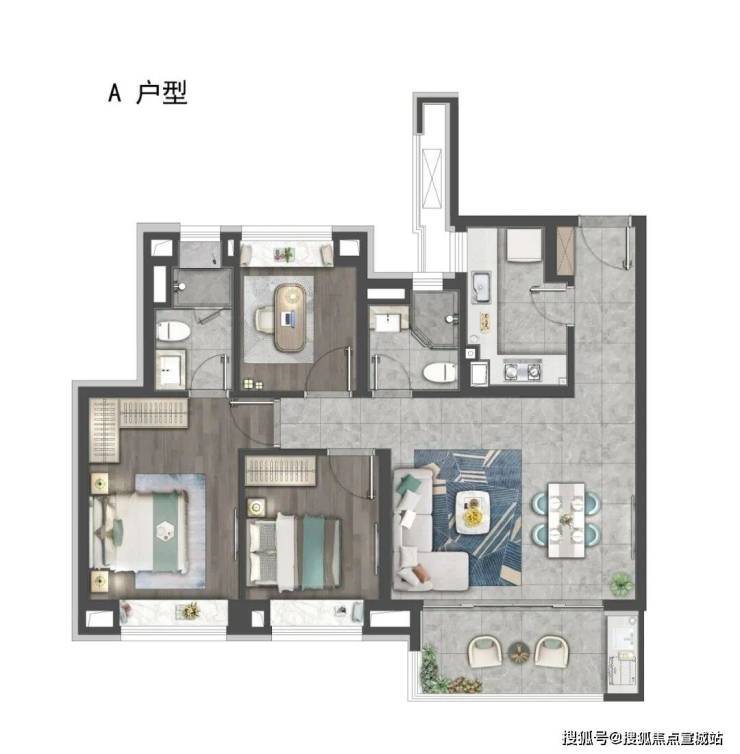在整体的户型设计上,项目在做到方正户型的基础之上,保持多开间朝南设计,采光优越。整体户型动静分离,居住体验感更佳。