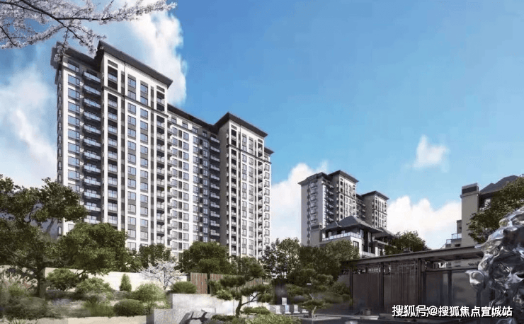 从产品形态上看,建邦国宸府打造的是金山新城极为稀缺的墅居产品,由高层+叠墅组成,建筑风格为现代中式滨海风格。其透露出的中式意境和构图美学我们可以从景观绿化一窥端倪: