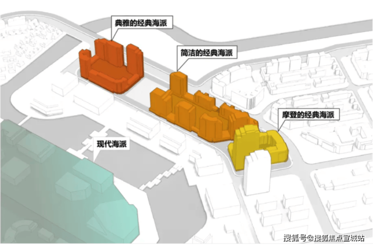 在前滩滨江板块统一的海派风格下,前滩滨江道三个地块,分别演绎出现代海派的三种气质:典雅、简洁、摩登。