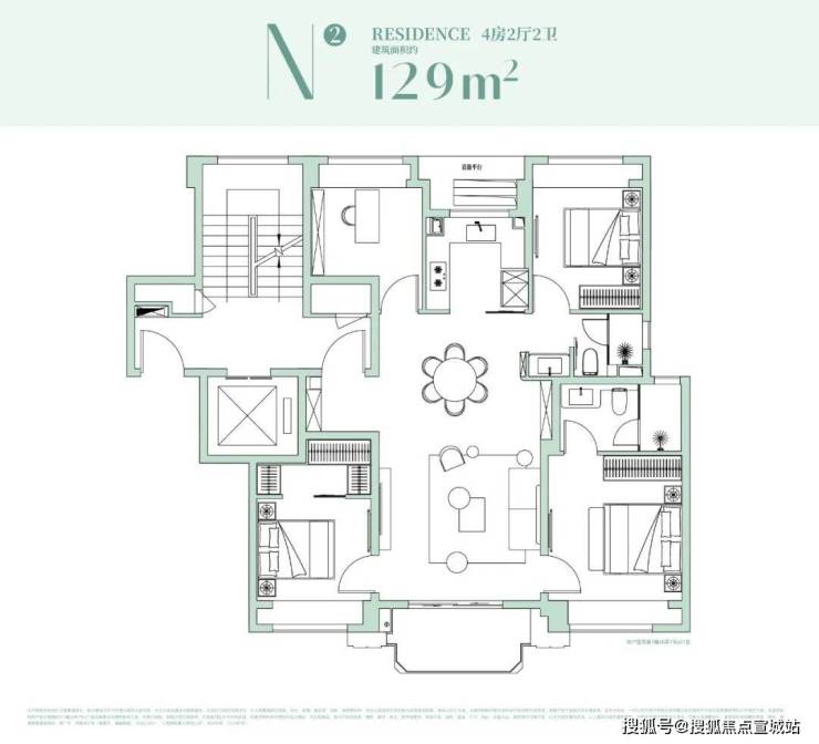 这样一来,便孕育出远比普通项目丰富、多元的户型谱系,以率先亮相的建面约129㎡四房户型为例,可窥见项目对生活的深刻理解。
