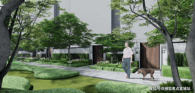 社区内部打造一带两轴三核的精致公园谧境。
