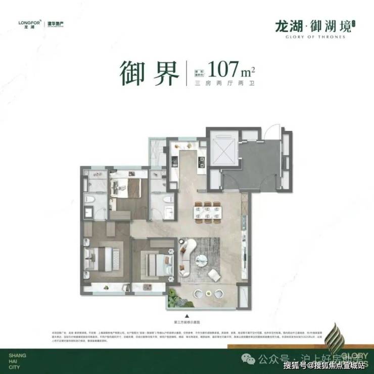 龙湖御湖境,精装107㎡大三房,呈现跃级享受的奢华场景,打造PLUS超奢尺度,如约10.8米跃级南向采光,阔享市面120㎡户型的尺度感;约4.75m真横厅,从容聚会、开派对,大有排面,尽情摆阔。越是跃级,越是难求,精装107㎡大三房,只此最后一栋,限量34席!