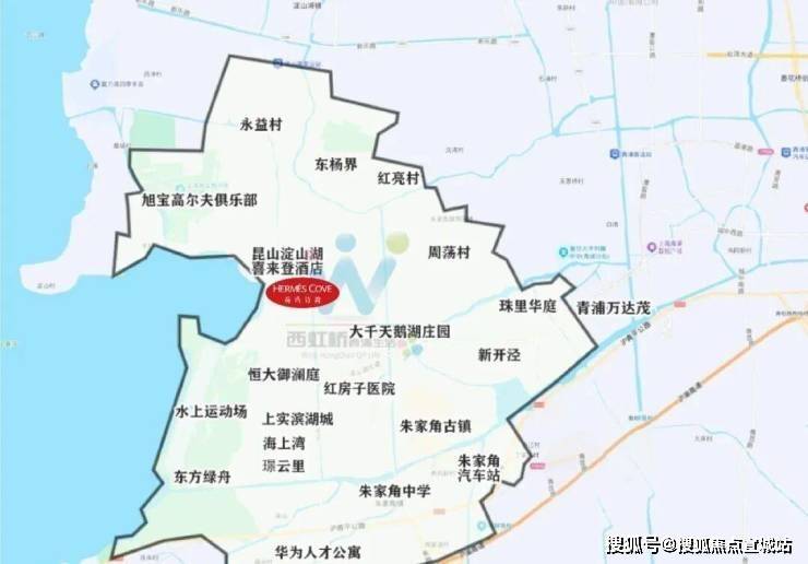 可以看到荷玛诗湾、淀山湖喜来登酒店等