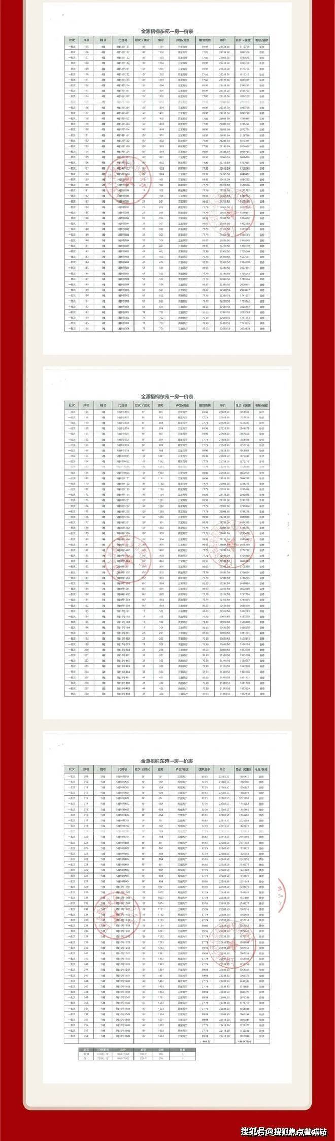 项目一房一价表