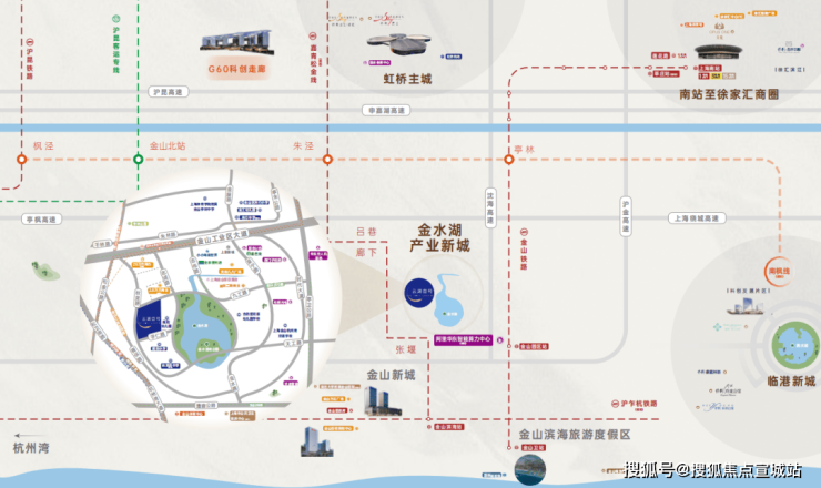 上海·金山根据《虹桥国际开放枢纽建设总体方案》,金山将全区域纳入“南向拓展带”,融入虹桥枢纽战略。以联动杭州湾,实践2035长三角一体化发展战略,树立上海西南重要门户。通过打造“上海湾区”城市品牌,成为产城融合样板城市、滨海花园城市、门户节点城市。