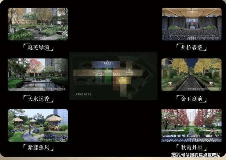 项目园林对轴线的运用同样出彩,堪称神来之笔的 “双轴六境”,由 “礼序归家轴+景观漫步轴”纵横交织,融在地文化,以“非遗”竹编形制,铺陈园林步道,同步淬取 “州桥壁落”、“紫藤熏风”、“天水远香”等嘉定古今6景,提炼细节元素及专属色系,营造主题园林空间。