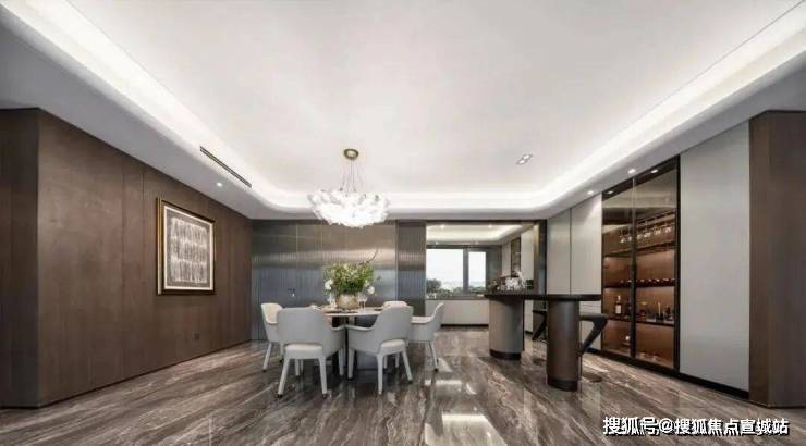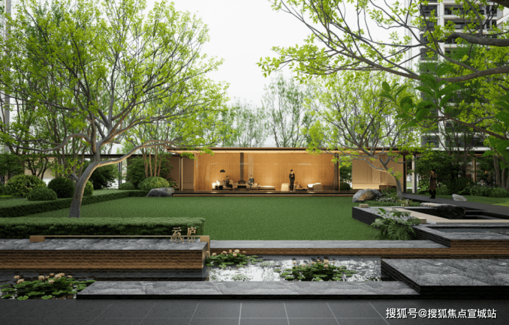 狮山金茂府的设计哲学,根植于“在地性”与“前瞻性”的平衡。南府门以苏州园林“框景”为灵感,通过金属格栅的镂空肌理,将远处的狮山晴岚与近处的香樟树影纳入画框,形成“一步一景”的诗意叙事。而门庭顶部采用悬浮式飞檐设计,以现代材质演绎传统屋檐的轻盈感,既呼应古城文脉,又彰显国际化的审美张力。