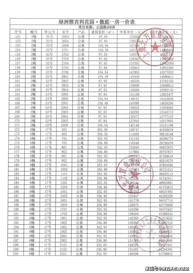 最新批次(四批次)已过会,拟推出建面约320-324㎡公寓,共60套,备案均价136,010元/㎡。