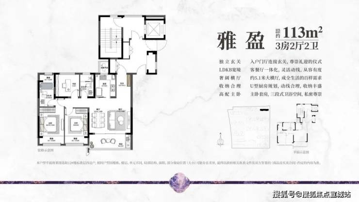 户型特点:户型设计方正,配有独立玄关,动线设计注重私密性,客餐厅等公共区域与居住空间分离。所有卧室朝南,南北通透,厨卫全明,主卧套房设计,部分户型主阳台朝南。