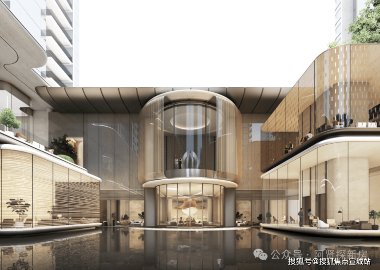 ✓270°全景玻璃幕舱,地标感湾流立面:以铝板和玻璃为主,无界采光面,转角弧形设计极致精致感