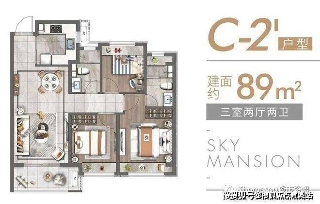 除了建面约89㎡的洋房,建面约83~89㎡高层户型也各有所长,均是三房设计,无论是从结构布局,还是空间利用皆相得益彰,承载一家人的美好生活。高层户型如下: