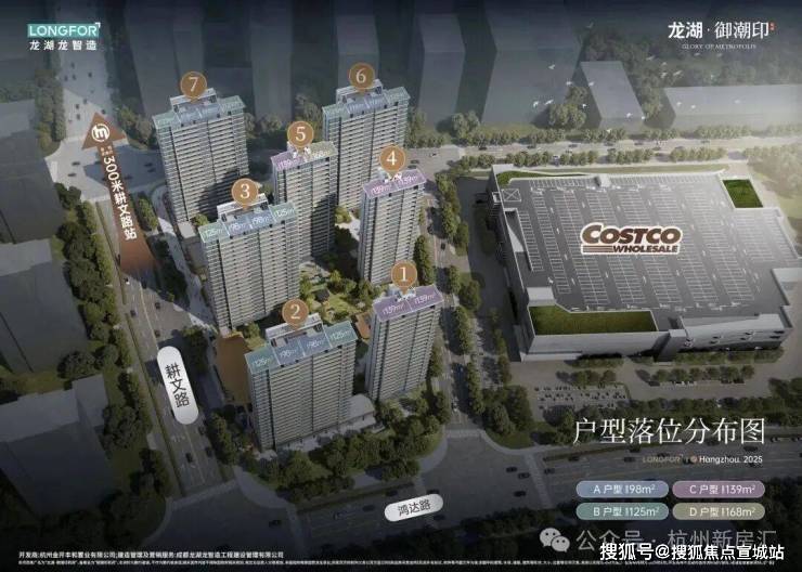 项目位置:萧山区耕文路与鸿达路,建筑面积:约9.38万m²,容积率:2.5,总户数量:494户,车位配比:1:1.25, 建面约98-125-139-168m²,总价280万起,首开均价:31800元/m²,1站亚奥都会泳池会所奢宅。