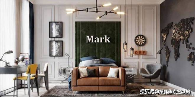 男孩的卧室,将房间布置成超想象力的空间, 以世界地图的形式对灯给予了极大的关注,让人联想到夜空中飞机飞过窗户的情景。