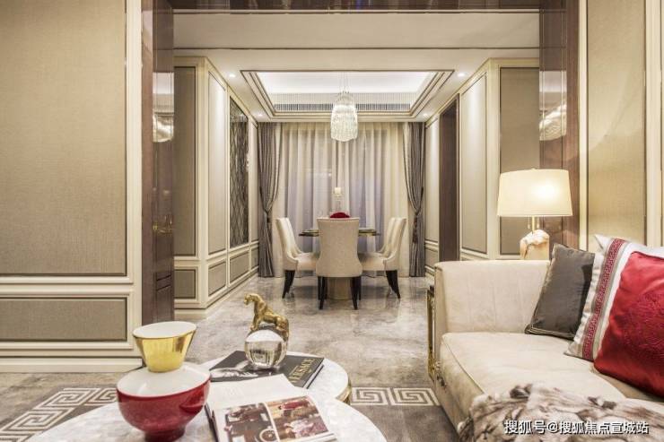 餐客厅畅达相连与仪式长廊形成十字联厅,呈现出空间的层层递进。