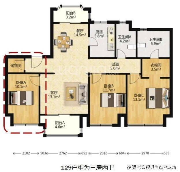 除了四开间朝南、全卧朝南之外,该户型还拥有诸多亮点: