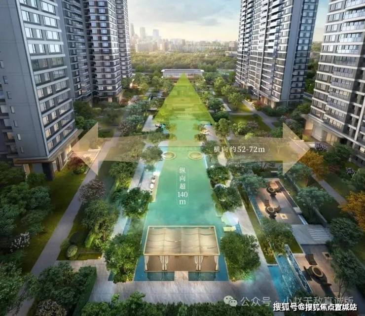 超140米无界视野:纵向超140米(仅指7栋至12栋距离)、横向约52-72米楼间距,用标准足球场的尺度打造无界视野,实现户户开窗揽景,最大程度保障居住的私密性