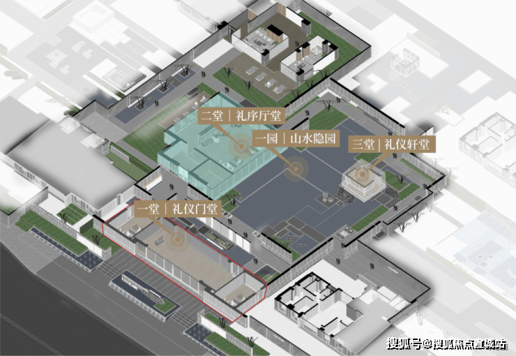 项目采用东方美学与现代建筑融合的设计理念,外立面采用昆石同色石材搭配现代铝材和高透玻璃,呈现极简东方的大美意象。社区内部以"两轴、三带、六进"空间格局打造宋代美学园林,营造四季可游的东方雅致生活场景
