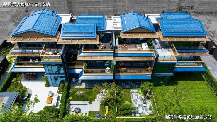 凭借对时代前沿的趋势洞察,樾青岚对宋风经典进行当代化创造.项目以卓越的窗墙比和大面积灰蓝玻璃,极简化打造光影天幕,倒映自然之境;在东方屋檐和宋韵飞檐之上,融揉现代审美工艺,诠释当代合院的东方大美;更臻选靛蓝色的陶瓦,原创蓝金坡屋顶,掀起杭州合院立面的新序章.