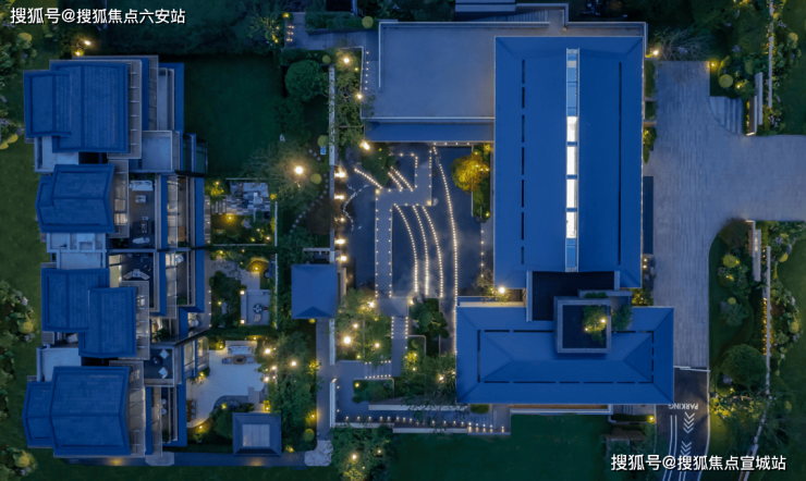 樾青岚原创的“蓝金”新色谱,更是掀起杭州合院立面的新序章:屋顶臻选靛蓝色的陶瓦,形成“蓝”之底色;在落地窗上,镶上金色铝线条外框,再辅以金属引檐、金色格栅院门,完成“金”之描摹.工致而严整的建筑笔法,与浓烈而沉稳的蓝金色彩,让樾青岚这幅工笔金碧山水画,自成一派天生的华彩.