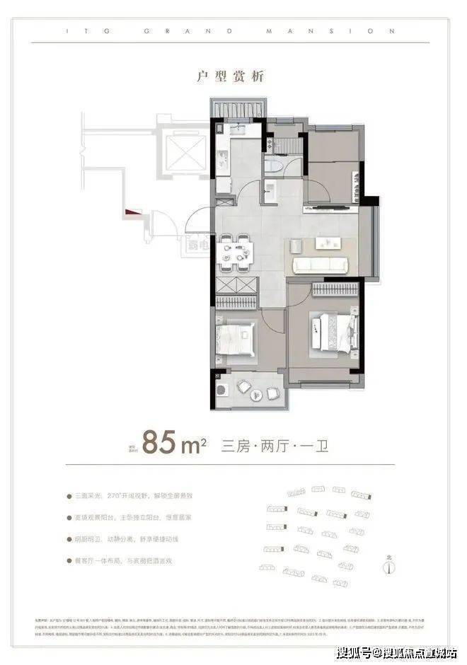 建面约85-96㎡ 3房户型