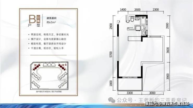 A户型:46㎡1房1厅1卫B户型:63㎡2房2厅1卫B1户型:63㎡1房2厅1卫