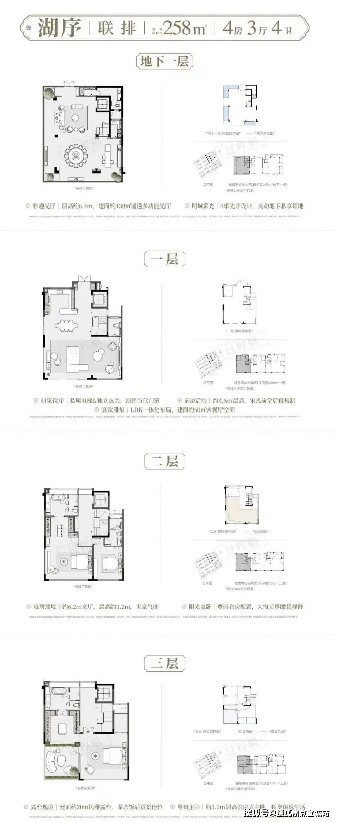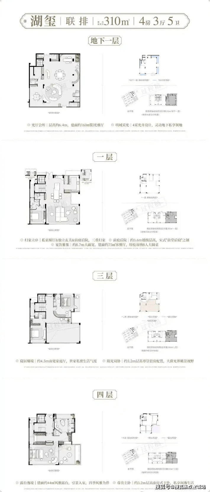 建面约182-206㎡藏品叠墅建面约258-310㎡传世联排将约6.4米层高地下室、私梯入户、奢度层高、前庭后院复刻宋人四时闲事宽幕厅堂的传世尺度,一一真实呈现。