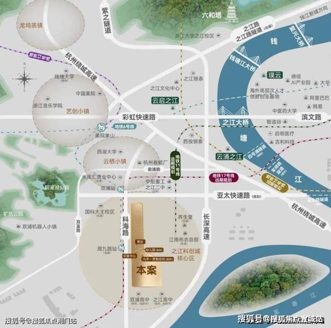 同时周边拥有全维立体的道路交通配套,紧邻彩虹快速路、之江路、紫之隧道“两横一纵”路网,同时规划三条跨江隧道,高效联通城市八方。