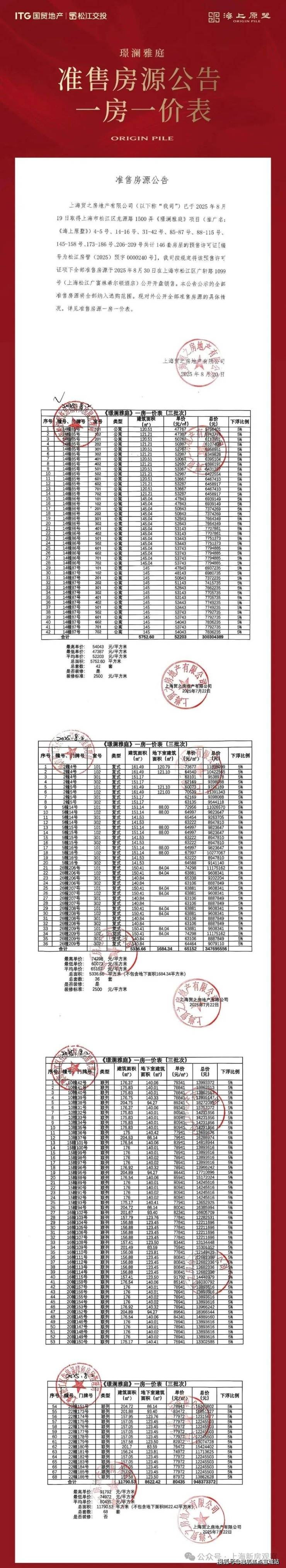 最新消息!松江·新城「国贸·海上原墅」四批次加推141套约105-150㎡洋房/叠墅;9月27日已过会均价54667元/m²!售楼处线上火热预约中!