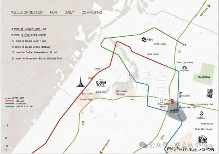 • 🚇 即将开通的迪拜蓝线地铁站,距离仅850米