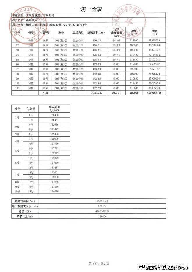 沁风雅苑一房一价表
