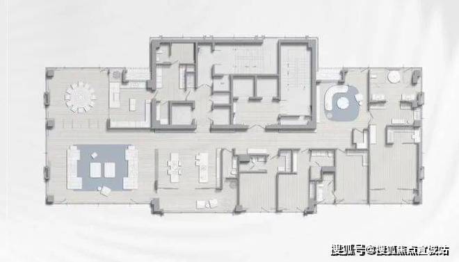 该户型呈三梯一户的设计,同样是3.6米的奢阔层高,朝南横向跨度超37米,会客厅面宽超18.5米,空间奢阔;