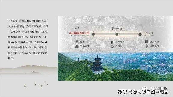楼盘位于杭州拱墅区,坐落于半山森林公园内,占地101余亩,容积率仅1.0,为主城区打造一座低密的总部生态办公、花园商务院区。