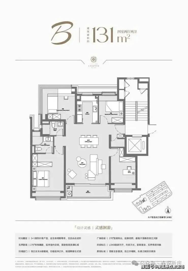 继承了270°阔景飘窗,搭配四叶草户型。