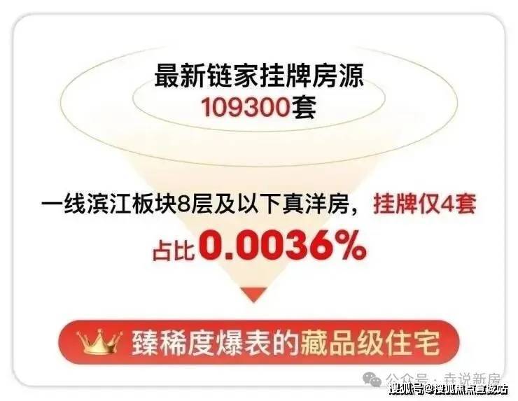 ①、链家网可对外展示的挂牌有约109300套,一线滨江板块(杨浦滨江、黄浦滨江、徐汇滨江、北外滩、陆家嘴、世博、前滩)10年房龄内8层及以下洋房只有4套挂牌。
