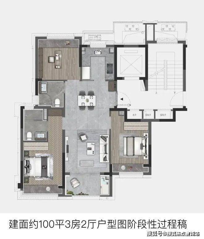 比起市面上普遍的三开间朝南动静分区户型,建发·海阅首府该户型至少有3大爆点: