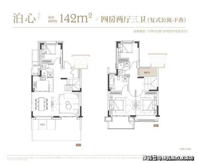 项目叠墅户型有建面约142㎡下叠,建面约139㎡上叠。
