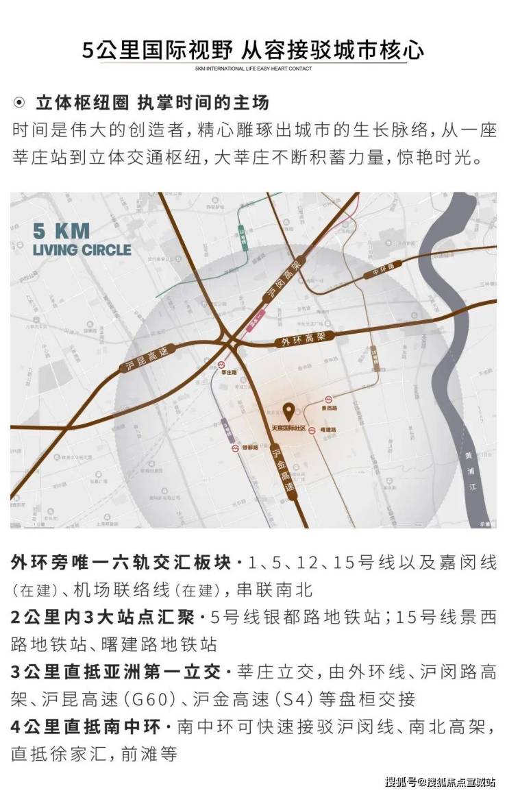 交通配套:项目周边交通便捷,紧邻 S4 沪金高速,距虹梅高架也较近,周边有地铁 15 号线景西路站,距离约 1 公里,附近还有 5 号线银都路站、曙建路地铁站等。此外,嘉闵线、机场联络线在建,未来交通将更加便利。