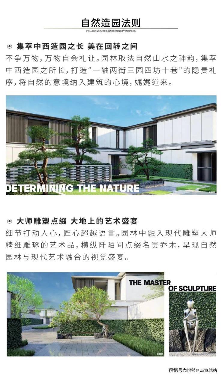 合院的景观设计体现了返璞归真,现代精致的生活本质,并且演绎出前瞻艺术,城市会客的隐贵礼序.将中国古典园林与西方园林取长补短,相得益彰,营造一轴两街三园,四坊十巷的通达之所,并融入现代工艺美术大师精典雕塑作品及名贵树种,安置于阡陌交错间的节点.艺术品装饰社区公共空间,主题阶段性布展式地呈现于业主的面前.横纵阡陌间点缀的艺术品与名贵乔木,宛如星河,异彩纷呈,呈现出自然园林与现代艺术融合的视觉盛宴.